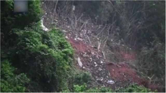 Ratusan petugas tanggap darurat telah menjelajahi lereng-lereng curam berhutan lebat di Wuzhou, tempat puing-puing dari pesawat berserakan setelah pecah dan mengakibatkan kebakaran di lereng bukit.