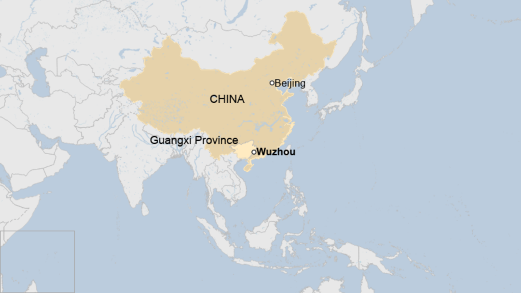 Pesawat jatuh di dekat kota Wuzhou di daerah Teng. Guangzi adalah provinsi di China selatan yang berbatasan dengan Guangzhou, kota besar di China tenggara.